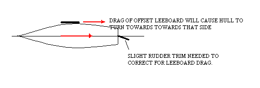 Remember that the side force on the leeboard can be considerable and with that side force goes drag. I would think that when sailing hard to windward the drag of the leeboard might be a good portion of the total drag. So imagine dipping a paddle down one side of a canoe - the boat will turn in that direction. And so it is with leeboards - the boat will try to curl towards the side of the boat with the leeboard. It should have weather helm all the time but there might be situations where it has weather helm on one tack and lee helm on the other tack. How critical is it? Not very, at least not in a boat of normal proportions where the beam is no more than one fourth of the length. The first time I noticed this was on my old Bolger Jinni which had many asymmetries. The leeboard was on one side, the mizzen sail was off to one side, and both sails used sprit booms which cannot be symmetric. I could tell after a season that it was sailing with slightly different helm on each tack but thought it was due to the offset mizzen mast. That might be true to some degree, but after a few seasons I was convinced that the majority of it was due to the leeboard drag always being on one side.