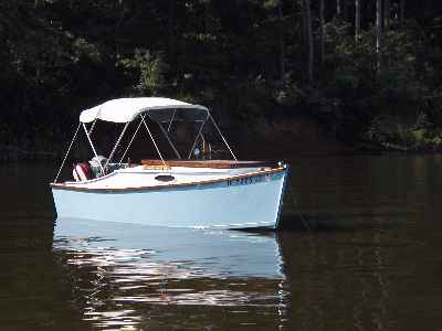 Kilburn Adams brought his Skiff America and three of his buddies brought theirs for a total of four! This photo shows the Skiff America of Glen Myrick but the other three are identical right down to the colors and trim. Bill Dulin and Nelson Spencer brought the others: