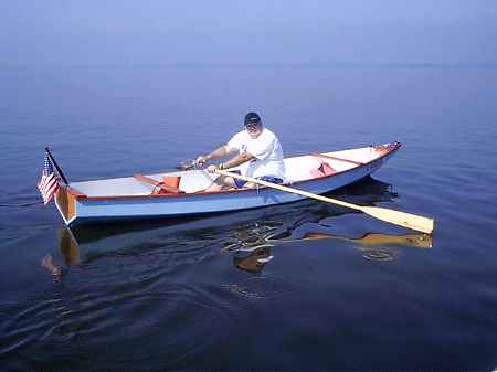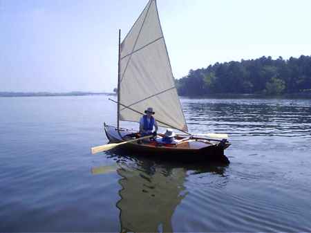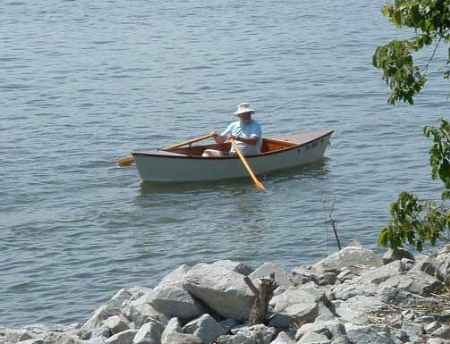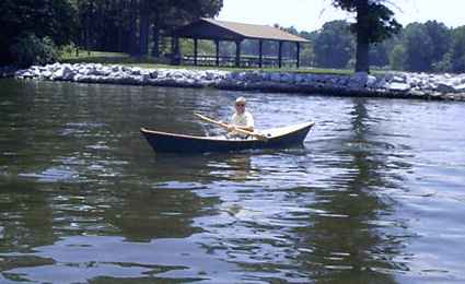 Max also brought this Oracle shown here being rowed by Bob Peckham (who regaled us at the cookout with stories of teaching the deaf for over 30 years). Bob is building an RB42 which is about the same boat stretched to 18'.