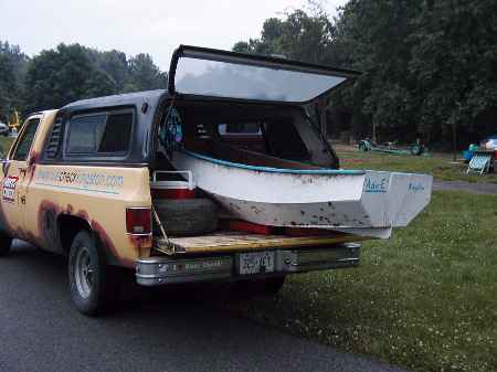 Bruce and Elaine Hector came all the way from Ontario with this Bolger Nymph. He has two Micros in the shed to go with it. He wrote an article about this meet for www.duckworksmagazine.com and I lifted a few of these photos from that site. (Rust on the truck is actually a custom paint job.)