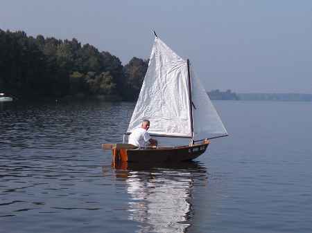 Roger Harlow came up from Corpus Christi to visit his folks and sailed this Piccup Pram originally built by Bob Williams.