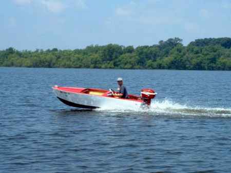 Old motor buff Jeff Hoesel brought this 11' Glen L runabout with a 1956 Johnson 15 and it all ran very well. He built the boat a couple of years ago but the design may be as old as the motor. It ran like blazes.