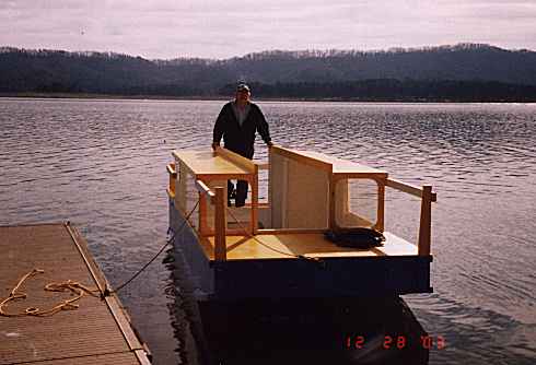 Shanteuse is a slight enlargment of the mini shanty Harmonica. Shanteuse is 1' wider than Harmonica and has a 3' extension on the stern to allow a small back porch and a motor mount that is totally out of the living area.