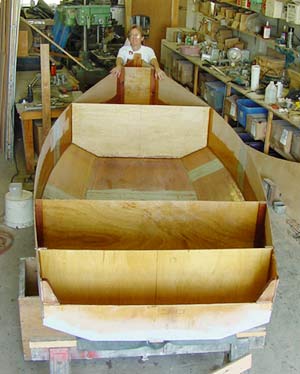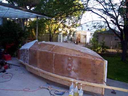 Ladybug uses taped seam construction. Six sheets of 1/4" plywood, on sheet of 3/8" plywood and two sheets of 1/2' plywood.