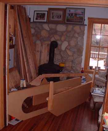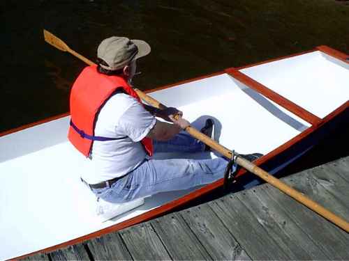Here he is with his weight located properly for a level boat. At this time he marked the seat location on the bottom of the boat so he could easily repeat the location in the future.