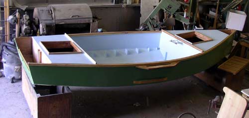 Not quite done yet. A good rowing setup will also have cleats inside the hull against which you can brace your feet. It's not a big deal in calm conditions but for rowing hard, and in some conditions all rowing will be hard, the cleats will make a huge difference in the amount of force you can deliver to the oar.