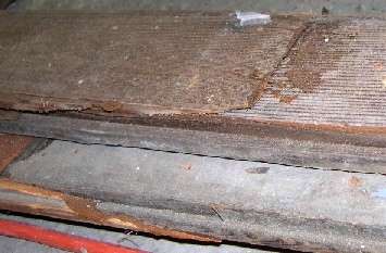 The next step is smoothing. Those of you with planes and planers just keep on doing what you were doing before. The rest of us will get out our belt sanders! Be REAAAAALY careful with this. It does not take long at all to sand a hollow! Do that and you'll have a pocket with no wood contact! Bad! Keep the sander moving at all times. I screwed a couple up pretty badly by letting the sander dig a hole. See the photo of my hastily cut chip of wood to fill a hollow I noticed after the glue was on!
