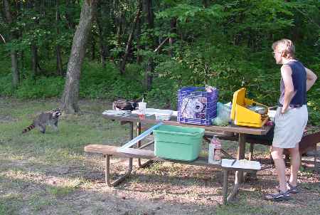 Sandra Leinweber tries to steal Rocky's lunch at Rend Lake.