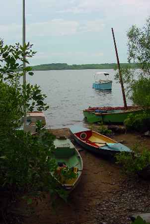 ... is all important at a meet like this and usually it is so-so, this year no exception. We had a good breeze on Friday for some spirited sailing. Saturday was a bit calmer with a shower here and there. But one of the good things about a meet that last a couple of days is that you will always get some hours when the weather will be OK, and so it was this year. The lake was a bit high again, good in that you don't run aground much but bad in that our "beach" got rather small.