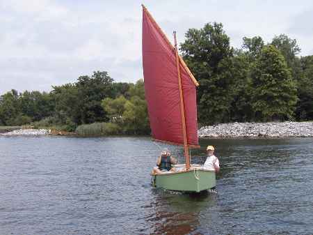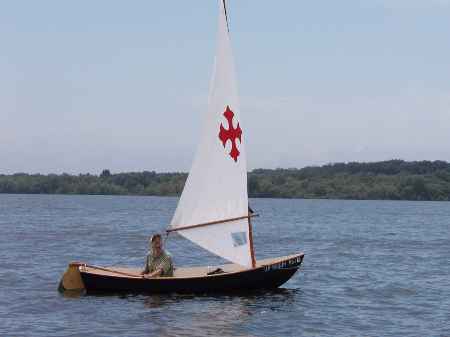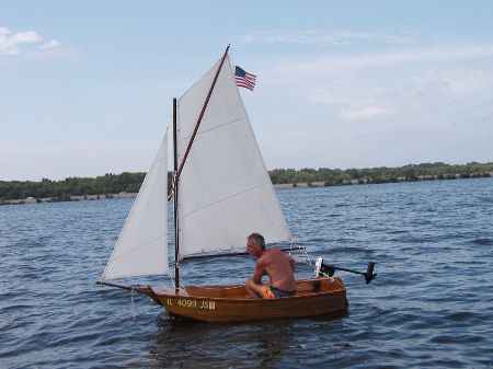 Kilburn Adams and wife brought their Skiff America, using it as a camping trailer at night in the camp ground. You can link to Kilburn's website on his boat (he sells plans) through the links at the bottom of this web page. I met Kilburn about 20 years ago at Carlyle Lake and it was he who introduced me to lug sails and also low powered skiffs. My AF4 is a result of his conversations and experiments.