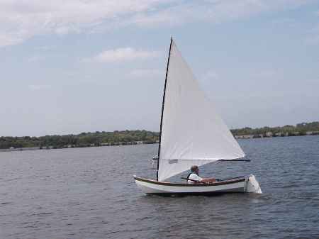 Phil Lea was another early bird bringing his Junebug Plus, about a 10% enlargement of the Bolger Junebug. Chuck and I sailed alongside Phil on Friday. Phil's boat is almost always the fastest thing around and he knows how to make it go.