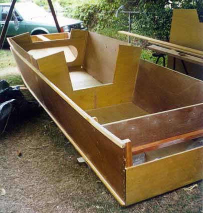 Constuction is nail and glue, with no jigs or lofting. From four sheets of 1/4" plywood, two sheets of 3/8" plywood, and two sheets of 1/2" plywood.