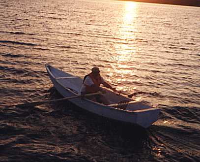 I have found some more photos builders have sent. I'm sure I've forgotten where I've stored others. Here is Charlie Ballou rowing off into the Massachusetts sunset: