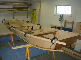 The prototype River Runner is complete but the builder sent some nice "in work" photos that I hope to run. Here he has assembled the prefabbed parts.