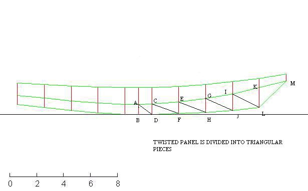 Now imagine that twisted bilge panel is divided into triangles like this: