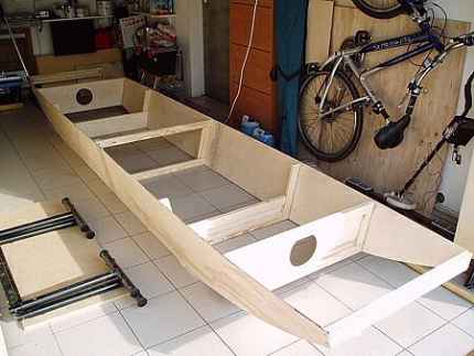 This long and lean project is a 19' version of Toon2. I don't have the drawings done yet. The builder is working from preliminary drawings and is about to pass me up. MDO plywood looks like cardboard now but it isn't.