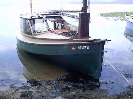 Brian Walker built the first Veep14 in British Columbia. He said it was to the plans but he added a strake above the blueprint sheer line to give a bit more freeboard, and he put a small bit of flare to the stern for looks. There are some other detail changes but the bottom of the boat is to the plans. He got a good summer's use out of it including water skiiing behind it! He wrote: