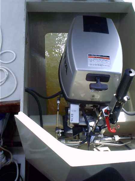 Here is a photo of the motor installation, a 20hp four cycle I think.