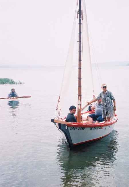 A Vector builder is keeping a website of the project at http://www.geocities.com/michsand@sbcglobal.net/ and here is a photo of his boat on its first sail, just before the storm hit. I also have photos of a Vector completed by Pete Mohylsky in Florida. Hopefully a report soon: