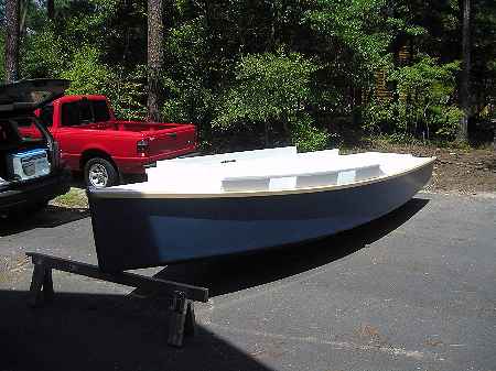 My original hope was to make this boat 12' long and light enough to cartop. But I convinced myself that it would be a one person boat if that short and that would be a mistake. And if it were light enough to cartop it might also be too flimsy to take the rough water it was intended to face. So I made it longer and used 3/8" plywood instead of the 1/4" I would use for a cartopper. The weight went up to the point where it will need a trailer but then again a 15hp motor is going to weigh close to 100 pounds and no one will carry around something like that more than once if he can avoid it.