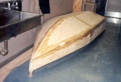 For the lift strakes as per the plans, I cut a 10 foot spruce 2x4 diagonally in cross-section. This created a lift strake surface parallel to the water's surface. I fastened the strakes with epoxy and screws "after" applying a layer of 6 oz. cloth and epoxy on the bottom reaching above the waterline. (After doing a lot of boat repairs over the years, I don't think it wise to glass over strakes or other scantlings I don't want to create a terrarium under my boat). I removed all screws after the epoxy set and filled the holes with thickened epoxy. If (when) the strakes get damaged on the beach, the fibreglass skin won't as likely be compromised. In effect, the strakes will serve to protect the fibreglass skin.