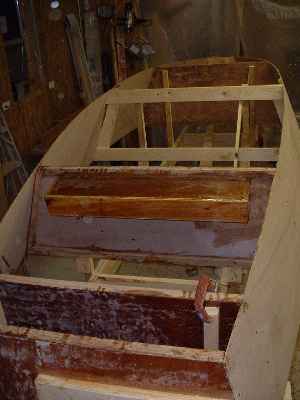 Here is Bob Hoffert's Toto in Ohio, maybe the first boat after mine. Looks like he has added a fore deck and put a big access hole in the aft bulkhead. (Remember that the aft storage box is also supposed to be an emergency buoyancy air box to help save your butt in a capsize.)