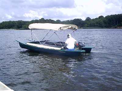 Also from Chicagoland is Mike Zenker with his Campanoe. No, it's not a homebuilt but it sure is interesting, made from two stock plastic canoes joined with a center structure complete with coffee table: