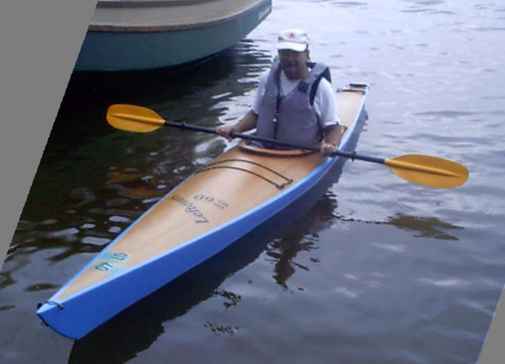 And driving all the way from Minneapolis was Mississippi Bob Brown who has authored many stories of his long time boating experiences in that great paper magazine Messing About In Boats. Here Bob has a tortured plywood kayak he designed and built. (I tried to get in this one to take it for a spin but my landing gear would not retract enough to fit into the boat.)