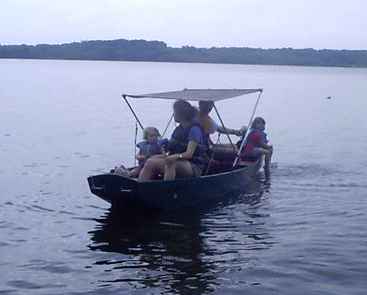I and Chris Feller followed them out only to see the latest in rain showers sliding in from the South. Chris and I went back into the cove to wait it out beached and under the bimini. But Rob and family pressed on and got really wet. Later in the day as we were cooking supper I saw Rob and schooner gliding across the lake under almost full sail. I don't think anyone got a photo of that but she is indeed a sail boat!