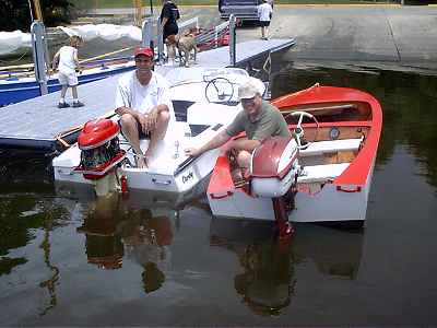 Max's old motor buddies Jeff Hoesel and Bill Hoevel, who sometimes claim to be brothers and sometimes not, had these oldies. Actually the boat on the right is a newly made old fashioned Glen L design. That on the left is a great Crosby runabout from the late 50's. Max would point out that the Johnson on the right ran like a top all weekend and the Mercury, with it shroud removed for repairs, would not. Instead it only ran at full throttle making for an interesting boating experience.