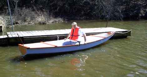 Here he is with his weight located properly for a level boat. At this time he marked the seat location on the bottom of the boat so he could easily repeat the location in the future.