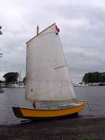 This long and lean project is a 19' version of Toon2. Shown here on its first sail in very light winds. We will wait a bit longer to get a sailing report in stronger winds.