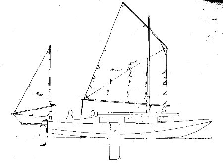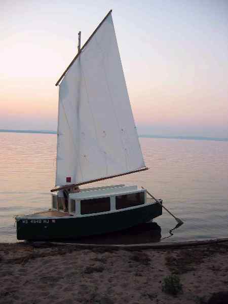 The sail rig looks pretty modest with a 207 sq foot main. I'll bet it is enought since this shape is easily driven. I don't think you can go any larger and still hope to handle it without extra crew and gear.Tthe lug sail shown is similar in size to Bolger sharpies and they seem to get by OK. Experience will show if it is too big/too little.