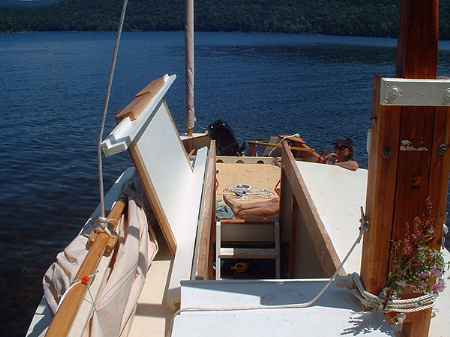 Garth Battista, who is a book publisher at Breakaway Books where he publishes sporting books including my Boatbuilding For Beginners (And Beyond), is a true boat nut and has worked himself up from dinghies and canoes to the big Cormorant. He took it initially on a quick shakedown run on a lake near his home and shortly later to Long Island Sound for a week with his family. Here are his comments: