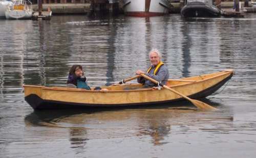 And the Vole in New York is Garth Batista's of www.breakawaybooks.com, printer of my book and Max's book and many other fine sports books. Boat is done, shown here off Cape Cod with mothership Cormorant in background, Garth's girls are one year older. Beautiful job! I think Garth is using a small lug rig for sail, not the sharpie sprit sail shown on the plans, so I will continue to carry the design as a prototype boat.