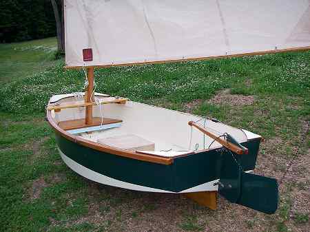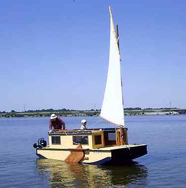 Update, 2007. Bob Williams brought a sailing version of Shanteuse to the 2007 Rend Lake meet. He worked the sail rig out totally on his own, they are not on the plans. He also swept the stern bottom up to improve low speed performance. Here are a few photos of his boat: