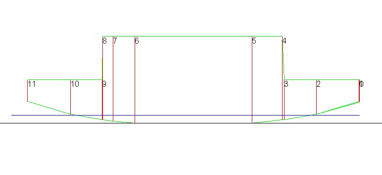 I modeled the Shanteuse as a shallow sterned boat with the bottom sweeping above the waterline exactly as it does at the bow. Here is the model: