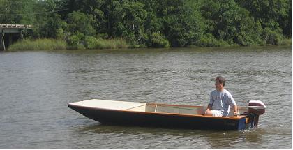 As for operation, these are smooth water boats. So it is best to stay on small waters that never get too rough. On bigger waters you need to watch the weather very carefully. For power I would stick to 5 or 10 hp but I'm very much a chicken about these things. To plane a boat like this, remember the good old rule of a horse for each 50 pounds. So if you are running at 1000 pounds total you will need at least 20hp to do the job and then at full throttle. So I think you would want at least 30 hp to plane at 2/3 throttle. And this boat could easily be loaded to over 1000 pounds.