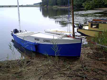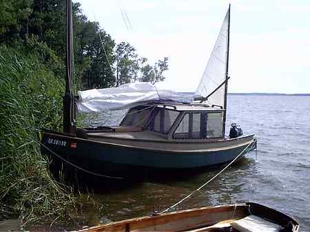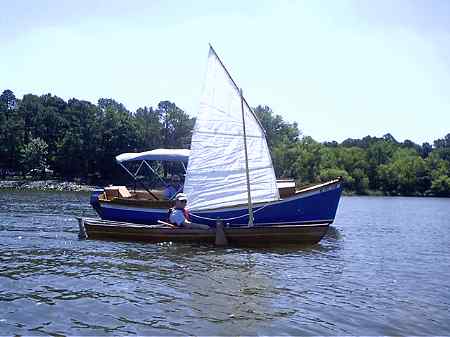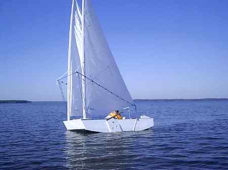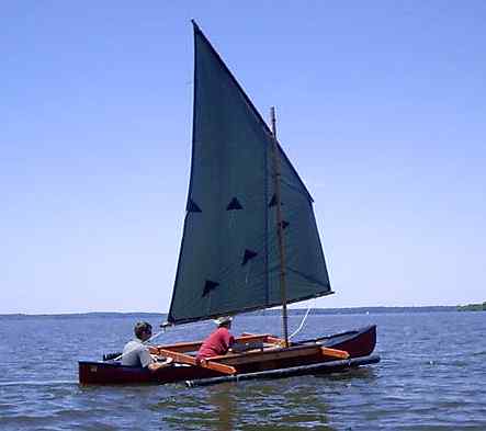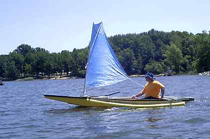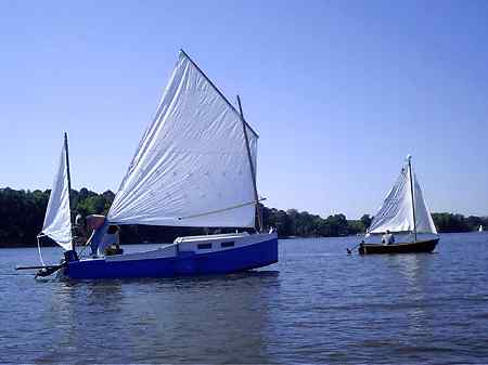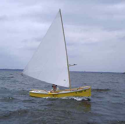 I never heard much of that boat but the second by Mike Sandell showed up at the 2006 Rend Lake Messabout much to my surprise (I had to ask what it was) and I got to talk to Mike and see it sailing for two days. Mike has a website at http://www.geocities.com/michsand@sbcglobal.net/ (archived copy) where the building is well covered. He was still quite new to the boat but especially on the second day, after he had tweaked the lines on his polytarp sail, he had no trouble sailing and sometimes leading the fleet.