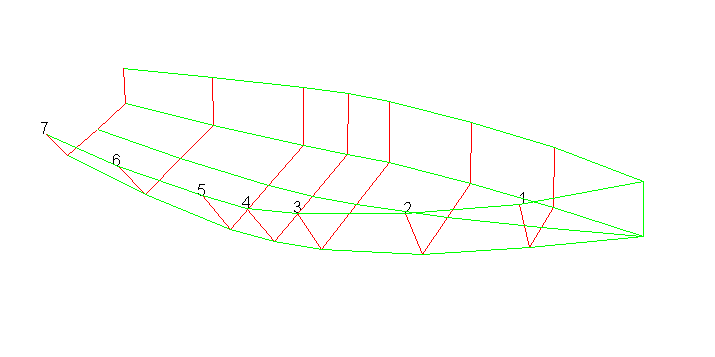 I'm shocked! The level trim is not the fastest. And the trim has real effect on the speed, much more than the weight! Weight forward is a lot faster than weight aft. Out of curiousity I ran a picture of the model with the cg at 5.0' aft of the bow, about the fastest cg location predicted in Hullform:
