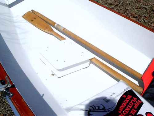 Not quite done yet. A good rowing setup will also have cleats inside the hull against which you can brace your feet. It's not a big deal in calm conditions but for rowing hard, and in some conditions all rowing will be hard, the cleats will make a huge difference in the amount of force you can deliver to the oar.