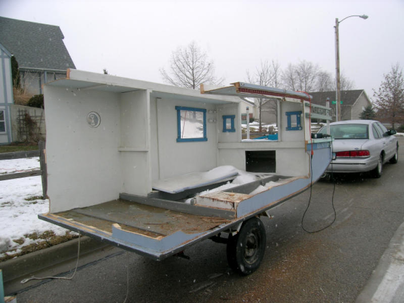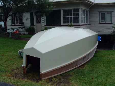 Eventually my boats multiplied and I needed the space and trailer for my AF4. How to get rid of the Jinni. Pretty simple it turned out. A sledge hammer and a saber saw quickly reduced it to a few big chunks which I burned when the neighbors weren't looking. The whole episode took an hour or two and it was gone without a trace except for a burnt spot on the lawn with some charred screws and nails.