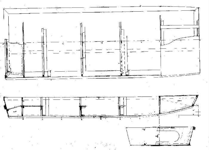 ...A simple 20' jonboat. The bottom is a constant 6' wide and the empty hull shell might weigh 600 pounds. The hull depth is 2', the transom is shown for a short 15" shaft motor but there is a motor well in front of it which goes to the hull's top so a 15" wave over the stern won't flood anything, it would take a 24" wave to go over the bow, sides or stern.
