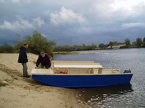 If you build a Michalak design expect many comments from bewildered observers! Younger people by and large scoff, asking me "what kind of boat is THAT!", while I have found older people to be more understanding. One gentleman asked me what it cost to build. I replied NZD4000 including trailer. He wandered away scratching his head. He had just spent NZD5000 on an outboard motor! Unbelievably, I met somebody who recognised the design. "Isn’t that a Michalak?" he said "Pencilbox, Musicbox or Jewelbox?" "Philsboat", I replied, "A newer design." "Does it live up to its claims?" he asked. "As far as I can tell" I replied "although it is early days yet." So how does it go? First from a safety aspect, the Birdwatcher cabin is brilliant. My children are in no danger of falling out, the cabin prevents them getting chilled and because they are removed from the elements they are less likely to get frightened from splashing water in gusty conditions.