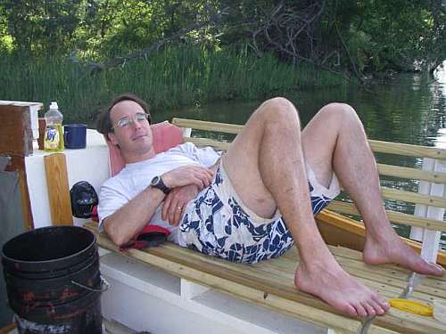 "We had an amazing time living aboard Cormorant (christened "Sea Fever") in Provincetown harbor for 5 days. The tide there was rising and falling about 12 feet a day with the full moon. We'd be high and dry up on the beach for breakfast, swimming off the boat at lunchtime, walking the flats again by dinner. It was a blissful time for me and my wife and two girls. We moved around, took little sails here and there across the harbor (West End to Long Point, then to the lighthouse, then to the East End, etc.) anchoring here and there, usually just running it aground as the tide allowed and staying for a while. Many shells were collected, and tidal pools investigated. Of all the harbors I've ever seen, it is the most alive. It's a couple of miles across and fresh sea water flushes the whole place twice a day. The number of snails, clams, crabs, fish of all sizes, mussels, eelgrass, etc. was just mind-boggling. On high tides I'd go spearfishing (many attempts, no luck) where at low tide I'd been walking around.