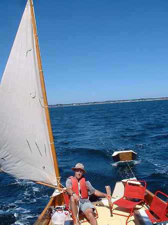 P.S. Jim -- I should also mention that on Sunday afternoon as we turned the corner from our run down to Wellfleet to the close reach upwind toward the inner harbor, the boat just drove perfectly. It seemed we made 40 degrees off the wind. That maybe wishful thinking, but it was an angle far better than I'd imagined a lugsail could manage. It was a joy to sail, in all conditions. My hat is off to you.