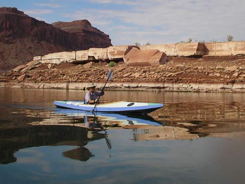 Really, though, Imresboat is not the best choice for a white water river trip - not the Rio Grande, anyway. It was perfect for Lake Powell, but for the River, a shorter version would be better - something more maneuverable. In any case, the next one we build will have a layer of Kevlar on the inside of the boat and heavier fiberglass on the outside. This was what my friend Skip Johnson did on his canoe (see photo above) and he was able to bang over the rocks just like the rotomolded boats that some of our fellow travelers paddled.