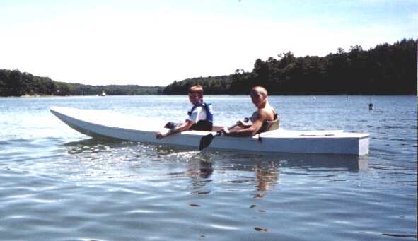 In summation, we are delighted with Imresboat. It is an easy to build, potentially cheap, fast touring boat with room for lots of gear. I think it could be modified for a spray skirt if you wanted to get into that kind of touring. It is not unstable at all compared to other double paddle boats and the stability increases dramatically as gear is added - In my opinion, cruising is where Imresboat really shines. Our plan is to build another one of these for cruising and then build a couple of shorter boats for river trips. Thanks Jim for designing such a great boat!"