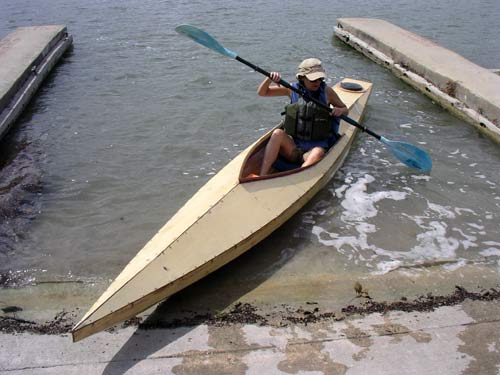 We were so unsure about the design that we took it to a local lake as soon as it would float. We were delighted to find that even with no gear at all, the boat, although initially a bit tiddley, hardened up once it leaned a bit and was not a problem to get used to. Also it proved to be very fast and easy to paddle! ![]()