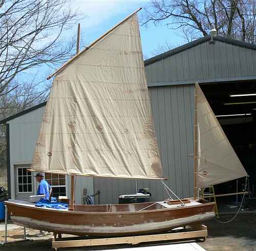 David Chase's Mikesboat is close to done, here it gets its first rigging.